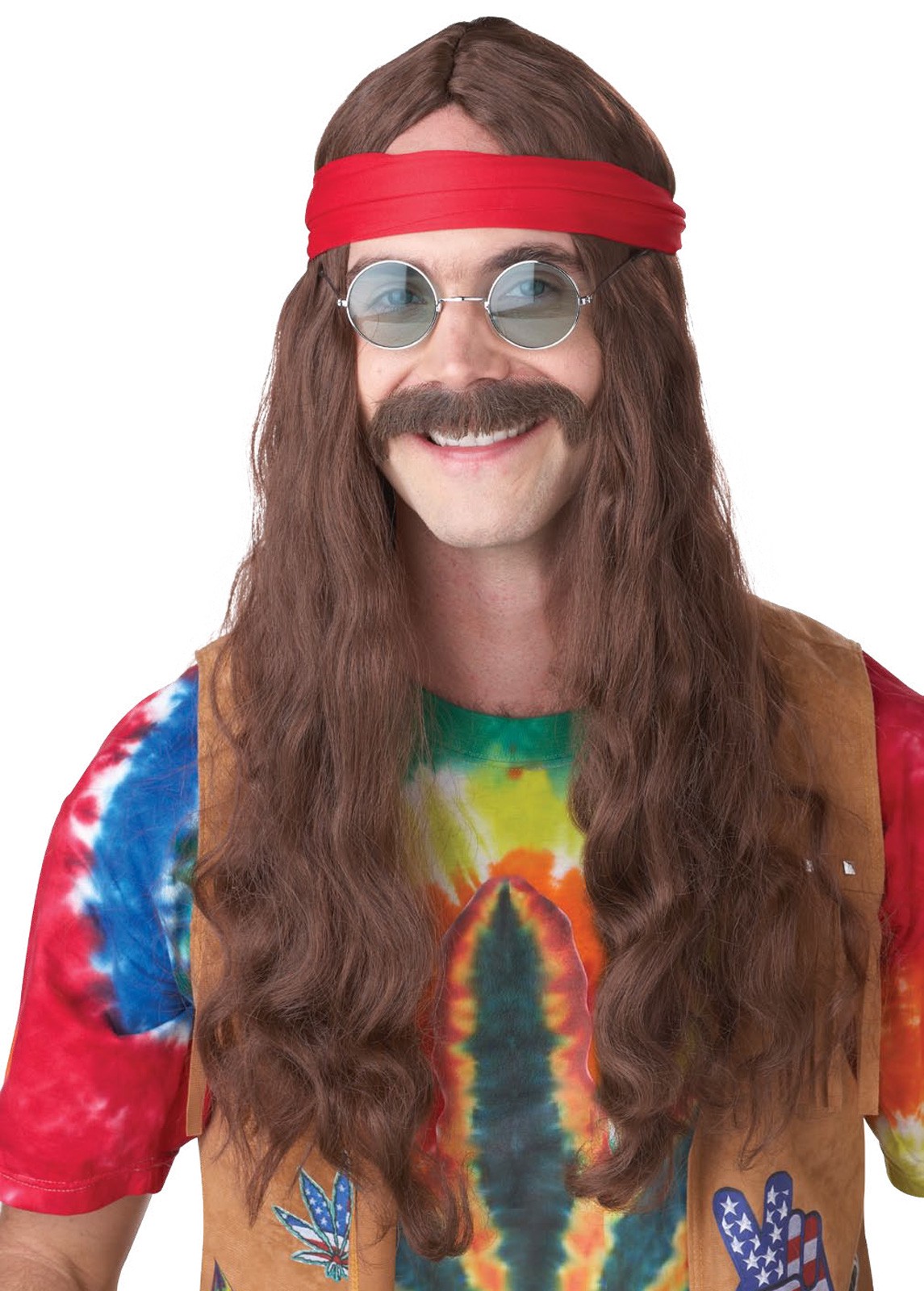 The Hippie Man Wig and Moustache includes –