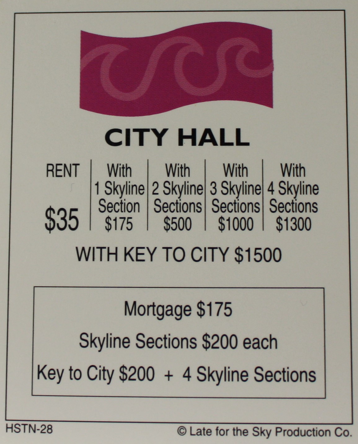 PARTS ONLY -Houston In-A-Box Board Game – “City Hall” Title Deed Card Only