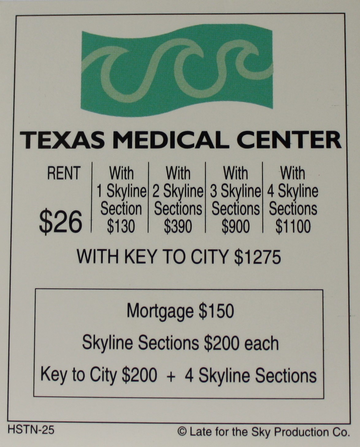 PARTS ONLY -Houston In-A-Box Board Game – “Texas Medical Center” Title Deed Card Only