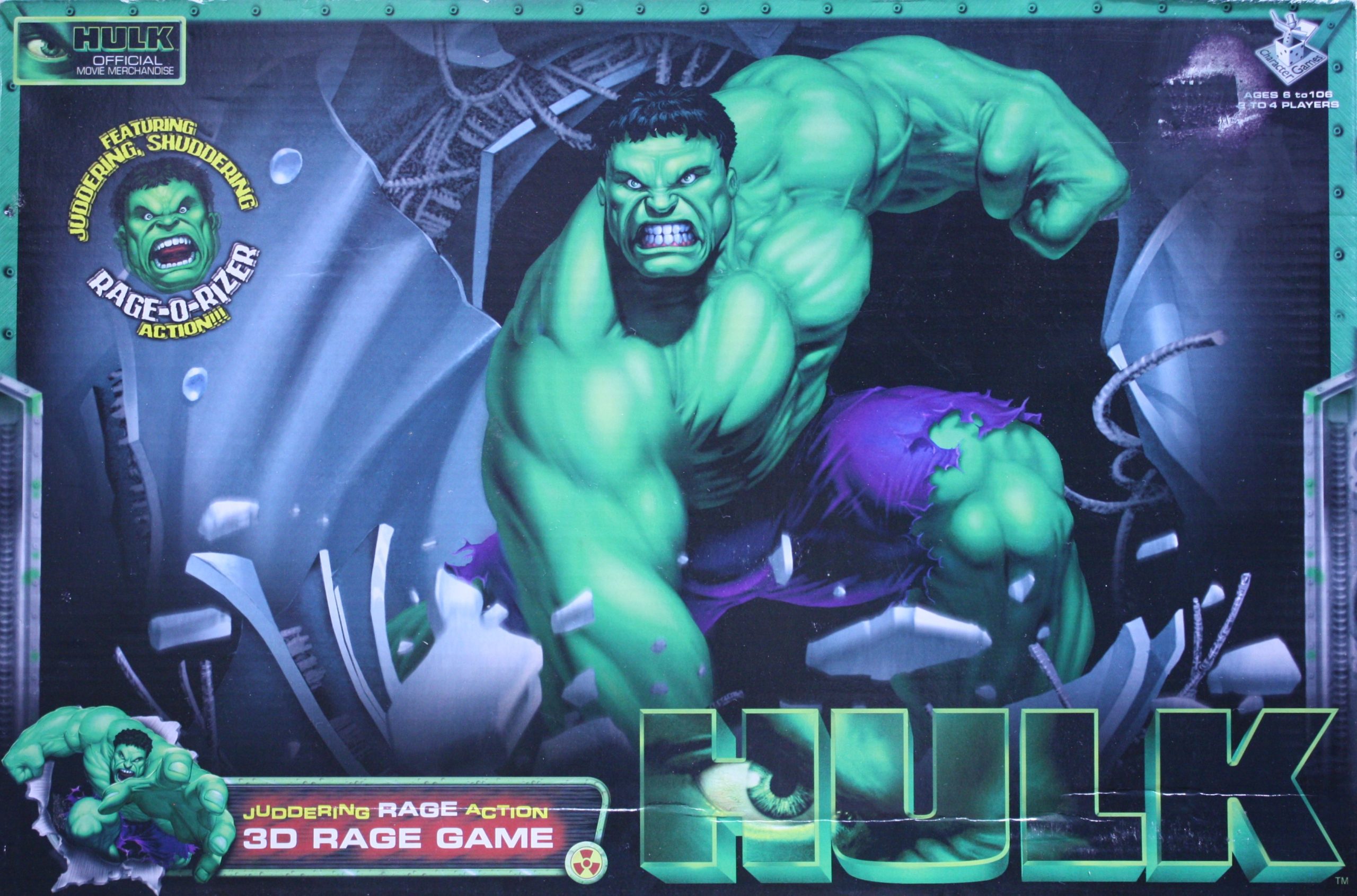 Hulk 3D Rage Board Game featuring unique vibrating Hulk Rage-O-Rizer.