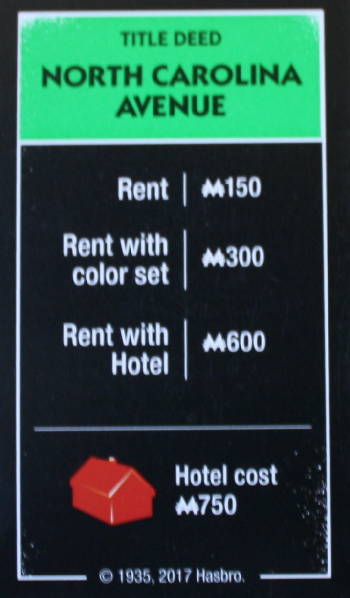 PARTS ONLY – Monopoly Board Game “Cheaters” Edition – “North Carolina Avenue” Title Deed Card Only