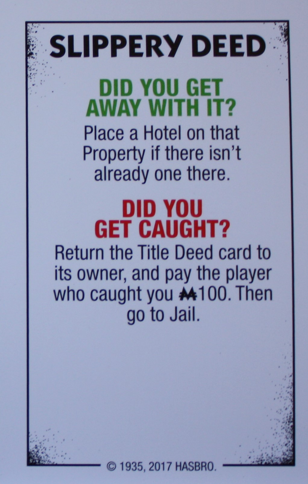 PARTS ONLY – Monopoly Board Game “Cheaters” Edition – Slippery Deed Card Only