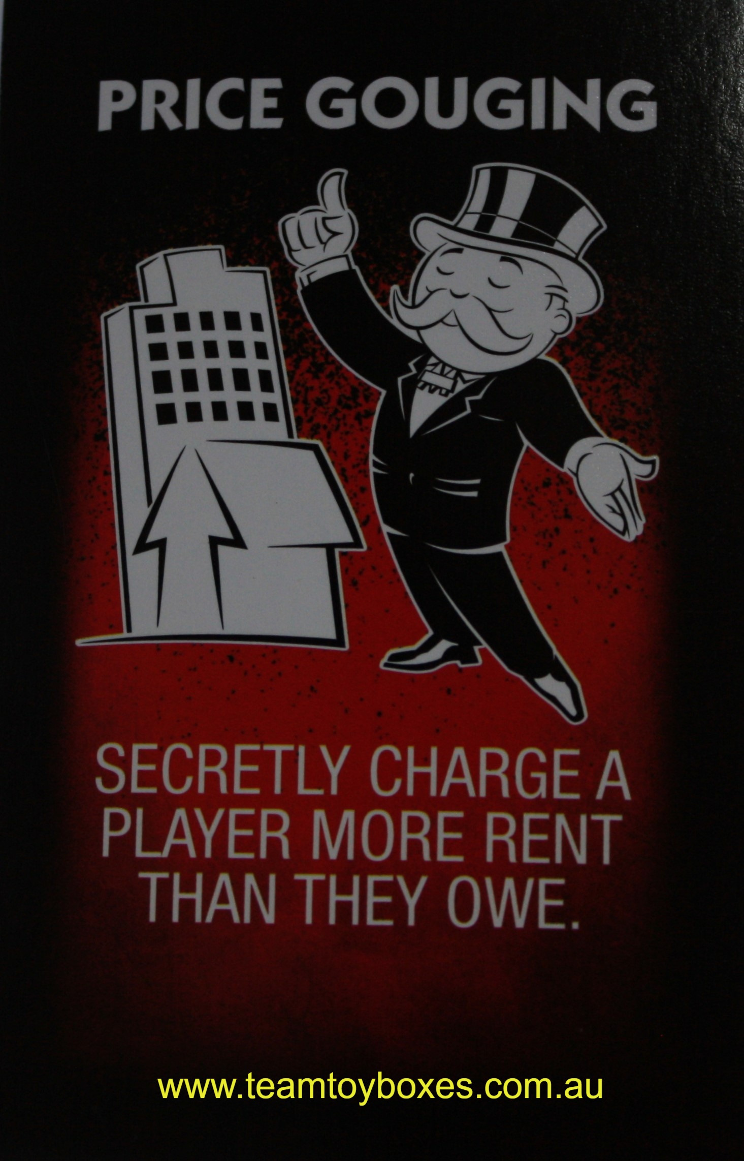 But wait!  Its not a free-for-all.  Cheat cards and sneaky Chance and Community Chest cards will tell you when and how to cheat.  All other cheating is off limits!  For those of you who really want to see what you can get away with once you’re familiar with the basic game, check out Ultimate Cheaters mode.