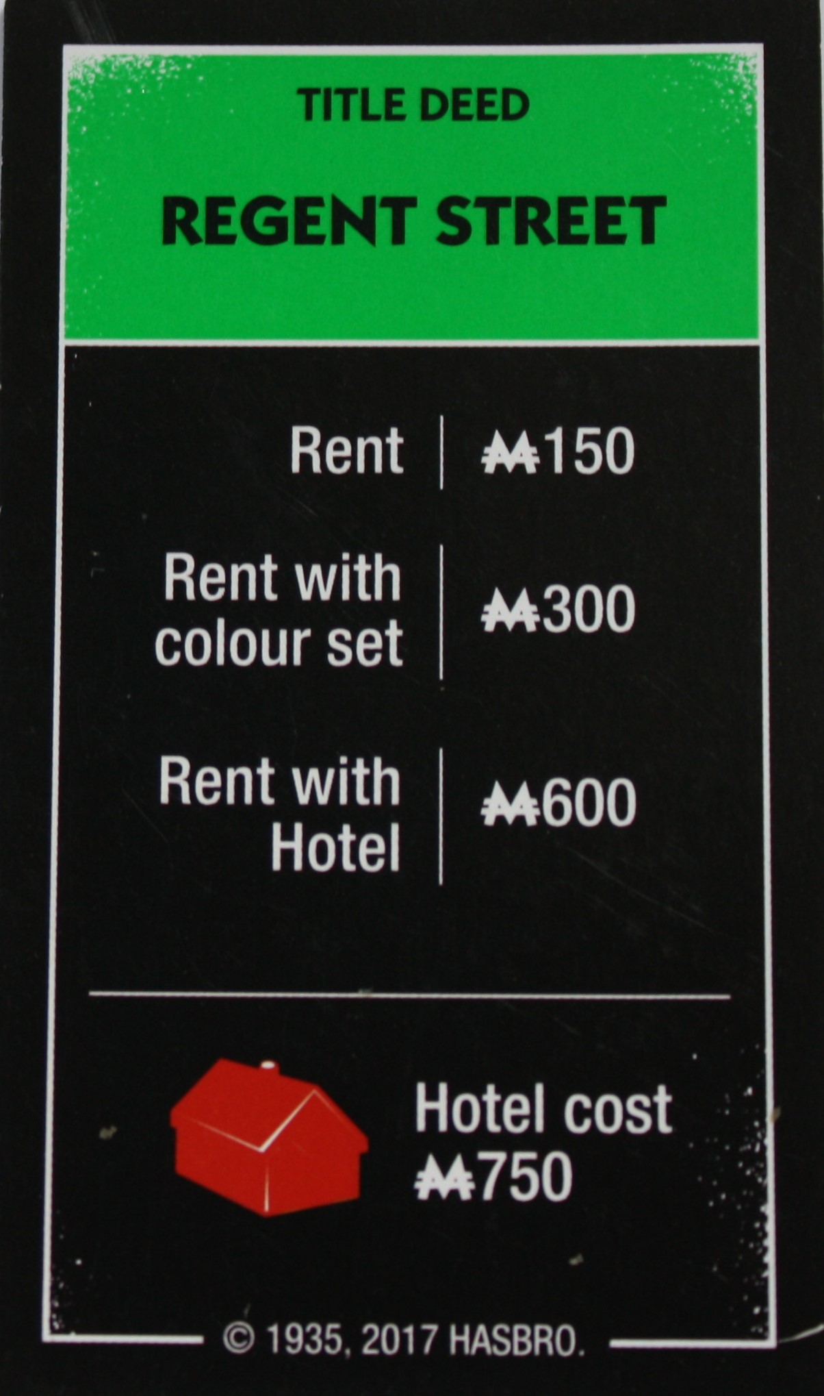 (1) Regent Street Title Deed Card Only – VGC