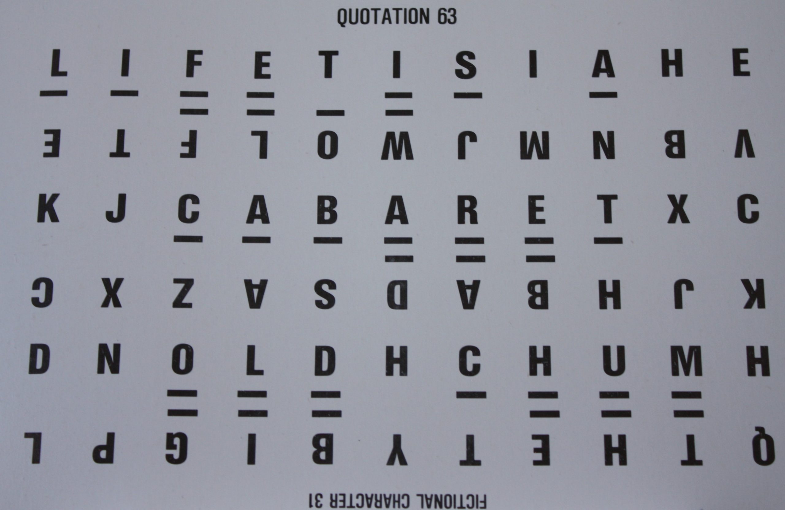 #7 Puzzle Card (Quotation 63, Fictional Character 31,Phrase 80, Thing 72) – GC