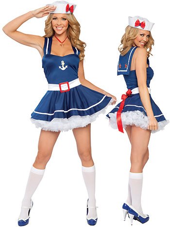 Have you been looking for a fabulous new costume? Perhaps this Sailor Costume will float your boat! The Sweetheart Sailor Costume includes: Dress with attached Collar Belt Hat with Bow
